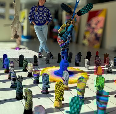 Gintarė regularly participates in exhibitions and collaborates with fellow artists to push the boundaries of textile art. Her installations have been featured in galleries and creative spaces, including Forssa Textile Week (Finland, 2025), Anykščiai art incubator (Lithuania, 2025), Utena culture centre (Lithuania, 2025), coffee house Raštinė (Lithuania, 2025).