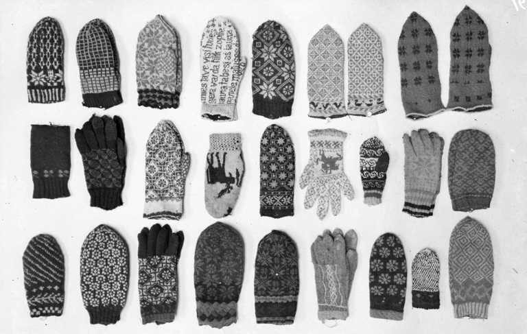 Reconstruction of traditional Lithuanian mittens, photographed in 1930-35 by B.Buračas.